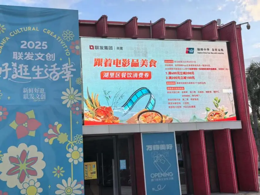 在厦门,国庆期间《志愿军》等影片热映,好多不雅众在猫眼APP购票时,顺遂领取了银联与场所电影局、商务局共同推出的“随着电影品好意思食”专项消耗券,用于影院邻近的餐饮抵扣,参与东谈主数达13.75万东谈主次。这一“不雅影+好意思食”的视觉、味觉联动,让电影票根变身成为好意思食优惠的“钥匙”。